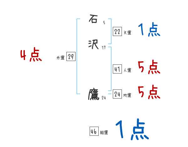 石沢鷹さんの画数の鑑定結果
