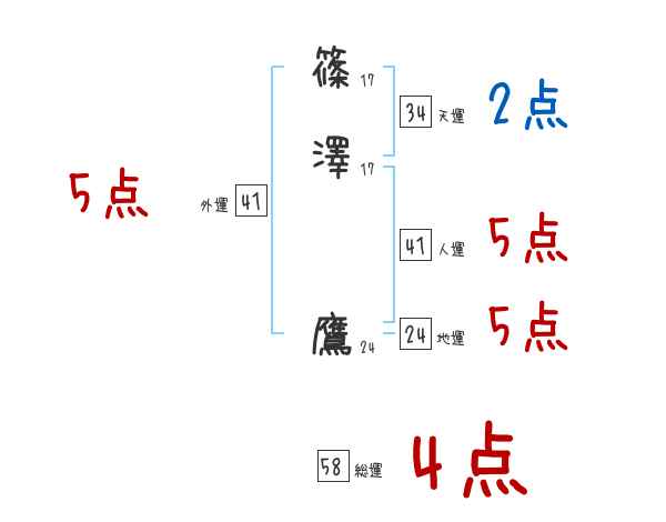 篠澤鷹さんの画数の鑑定結果