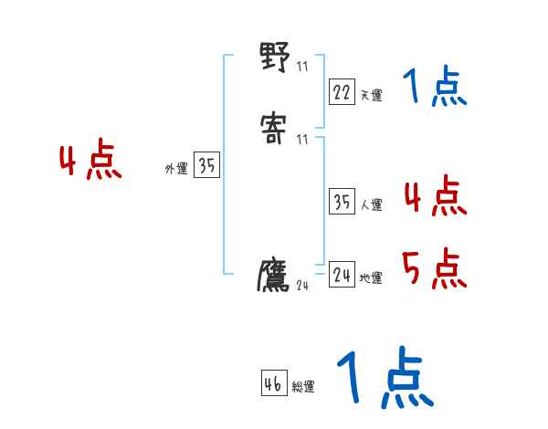 野寄鷹さんの画数の鑑定結果