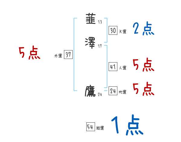 韮澤鷹さんの画数の鑑定結果