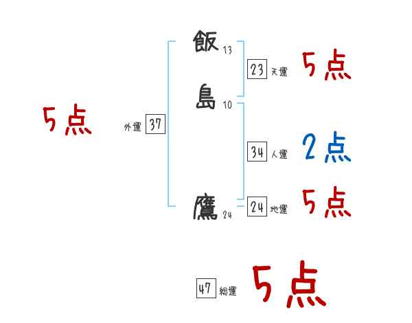 天運![]() | 飯島鷹さんの天運は23画の5つ星!想像力に優れ活力がある。一代で成功し名誉を手に入れる。 家系が持つ宿命的な運勢を表します。祖先から受け継いだ苗字ですので自分の力が及びません。家柄を象徴します。 |