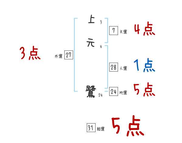 上元鷺さんの画数の鑑定結果