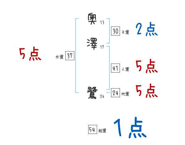 奥澤鷺さんの画数の鑑定結果