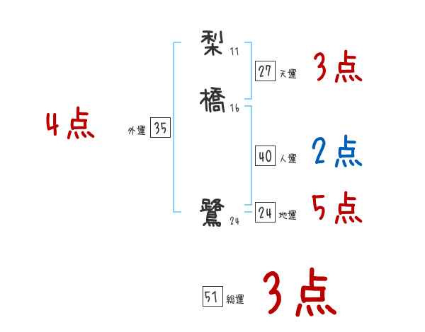 梨橋鷺さんの画数の鑑定結果