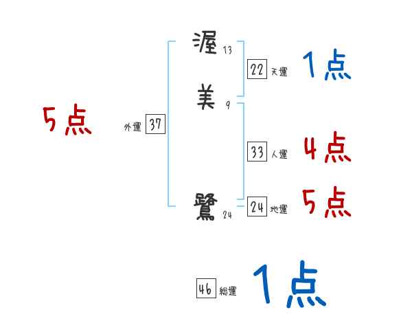 渥美鷺さんの画数の鑑定結果