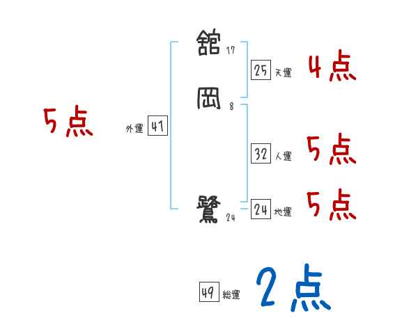 舘岡鷺さんの画数の鑑定結果