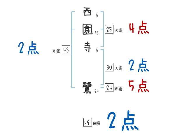 西園寺鷺さんの画数の鑑定結果