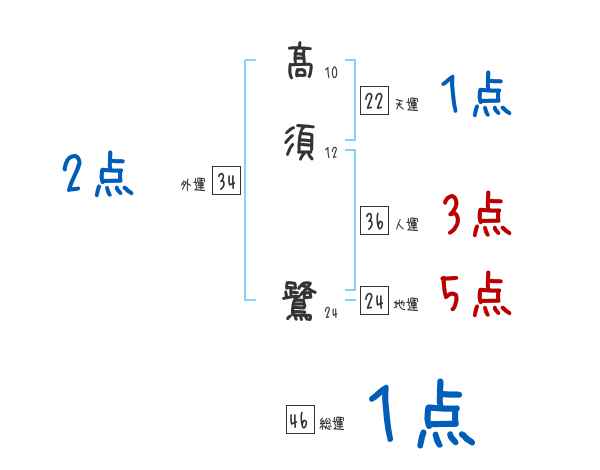 髙須鷺さんの画数の鑑定結果