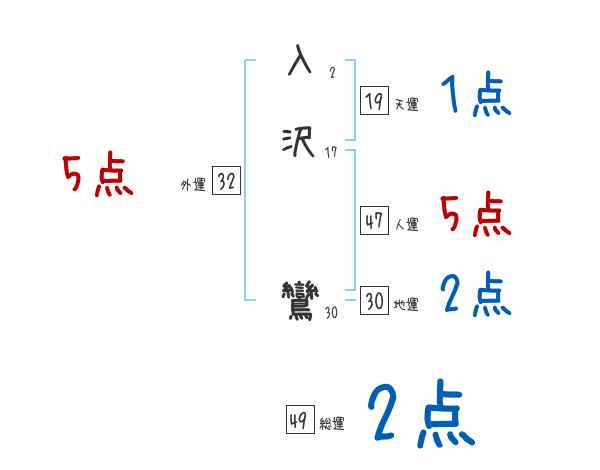入沢鸞さんの画数の鑑定結果