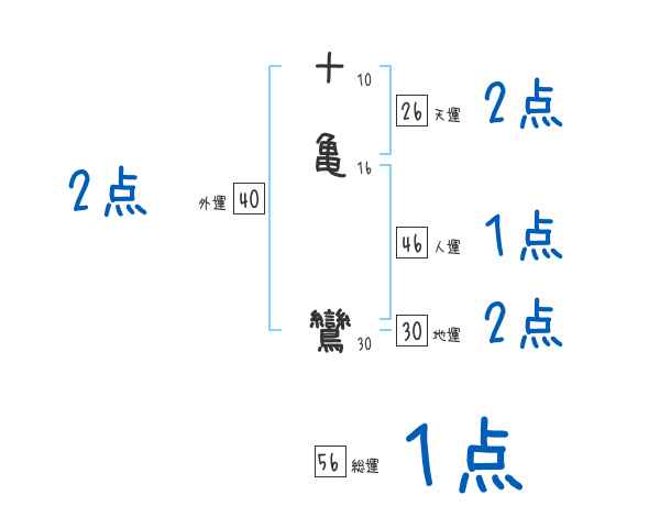 十亀鸞さんの画数の鑑定結果