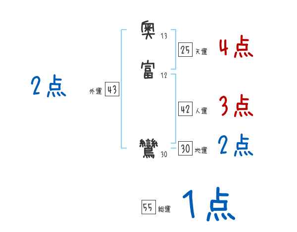 外運![]() | 奥富鸞さんの外運は43画の2つ星!頑固な性格で独立心が強いかも。やや非現実的で浪費に注意しましょう。 生活面を象徴する運勢です。外部から受ける影響力を表し、結婚運、家庭運や職場、環境への順応性を表します。 |