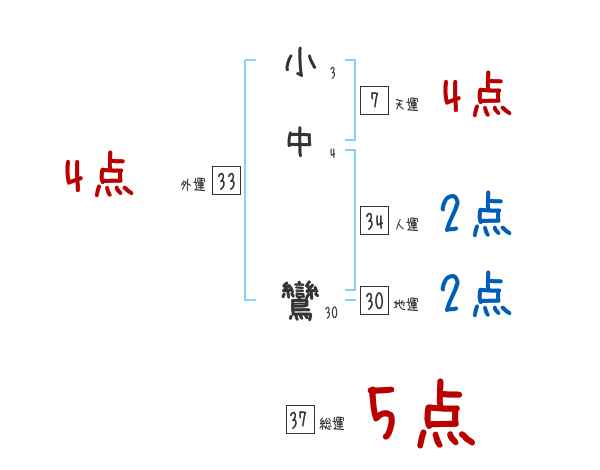 小中鸞さんの外運は33画の4つ星