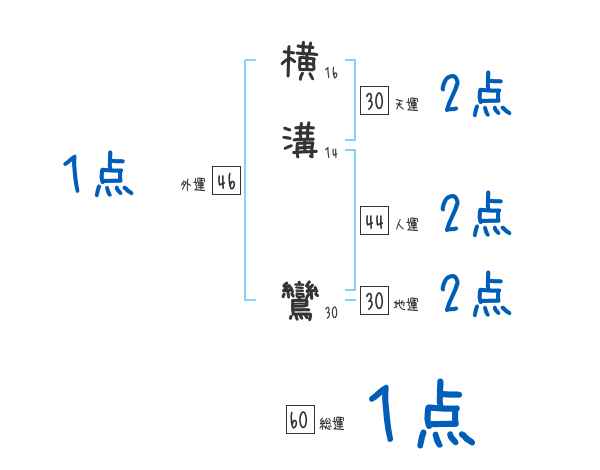 総運![]() | 横溝鸞さんの総運は60画の1つ星!悲観的で迷いやすい。波乱が多く損をしないように。 あなたの人生を表す1番重要な運勢です。生涯を通じて影響する総合運となり、主に50歳以降の晩年期に影響を及ぼします。 |