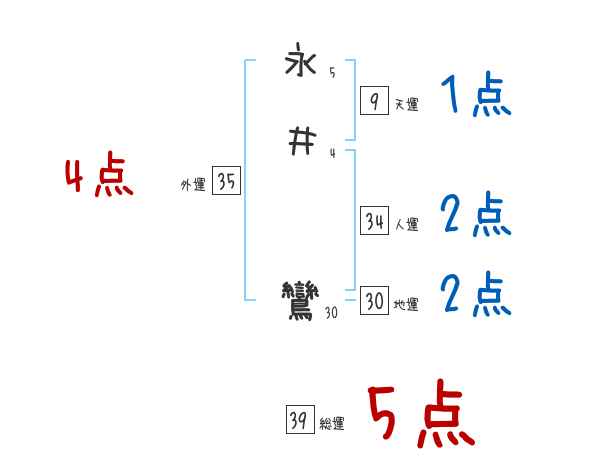 永井鸞さんの画数の鑑定結果