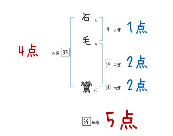 石毛鸞さんの外運は35画の4つ星