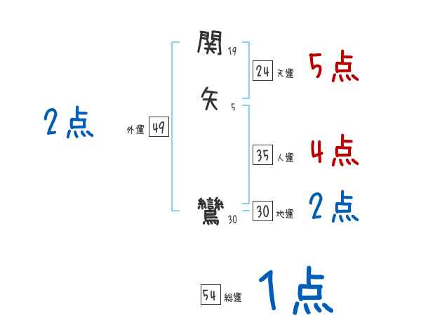関矢鸞さんの画数の鑑定結果