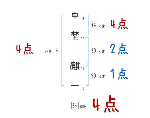 中埜麒一さんの画数の鑑定結果