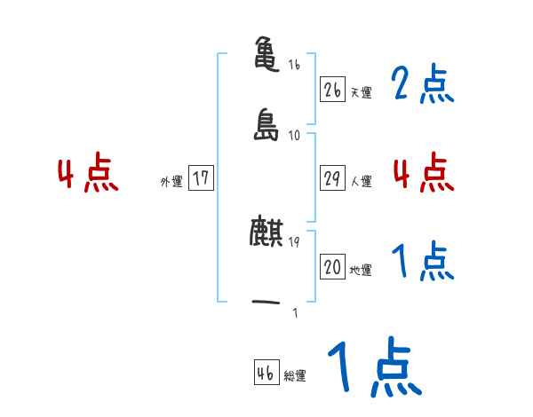 亀島麒一さんの画数の鑑定結果
