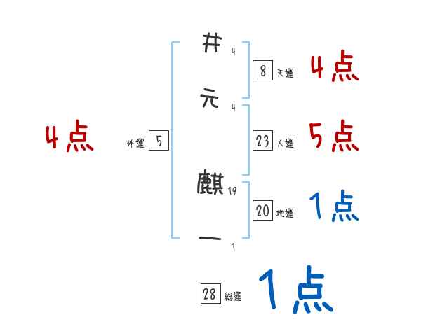 井元麒一さんの画数の鑑定結果