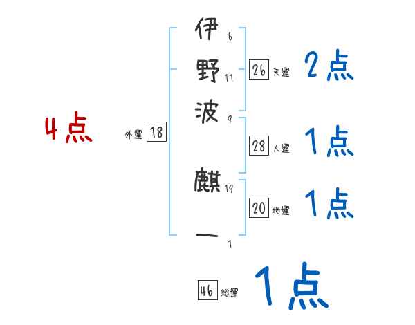 伊野波麒一さんの画数の鑑定結果