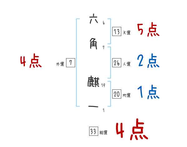 六角麒一さんの画数の鑑定結果