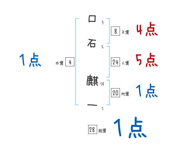 口石麒一さんの画数の鑑定結果
