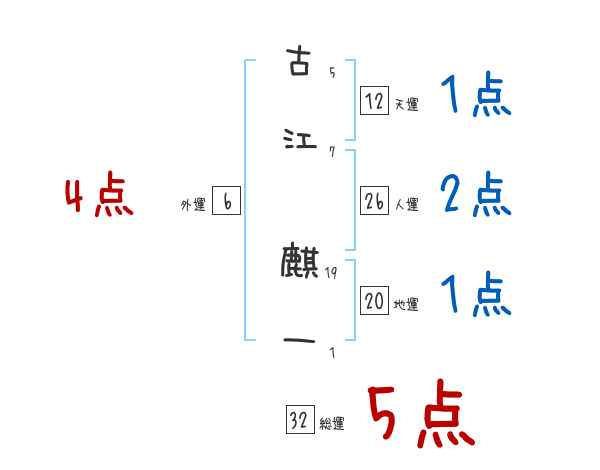 古江麒一さんの画数の鑑定結果