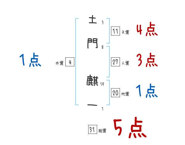 土門麒一さんの画数の鑑定結果