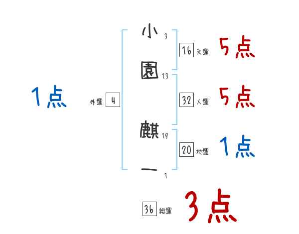 小園麒一さんの画数の鑑定結果