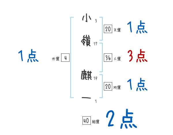 小嶺麒一さんの画数の鑑定結果