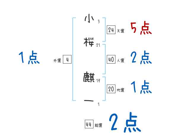 小桜麒一さんの画数の鑑定結果