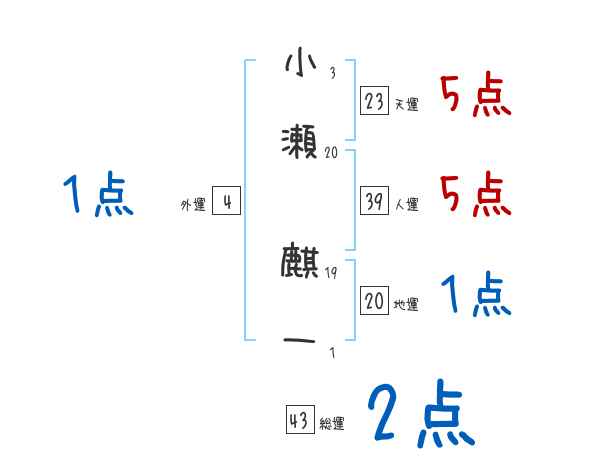 小瀬麒一さんの画数の鑑定結果