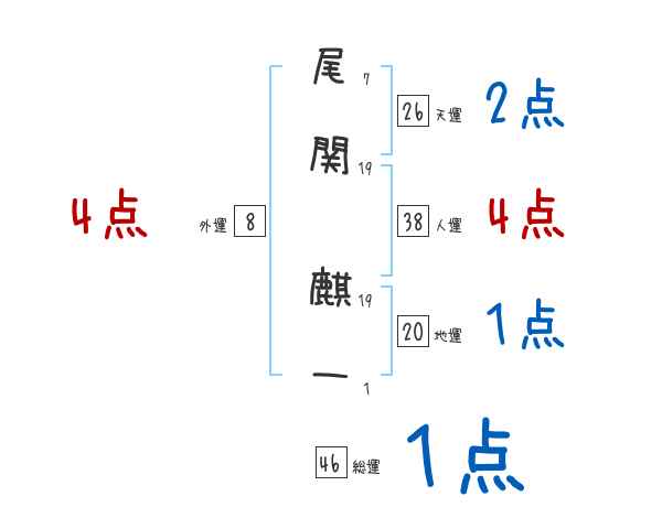 尾関麒一さんの画数の鑑定結果