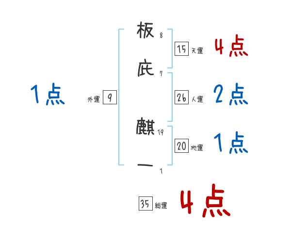 天運![]() | 板庇麒一さんの天運は15画の4つ星!人徳があり出世する。順調に物事を進め円満な人生。 家系が持つ宿命的な運勢を表します。祖先から受け継いだ苗字ですので自分の力が及びません。家柄を象徴します。 |