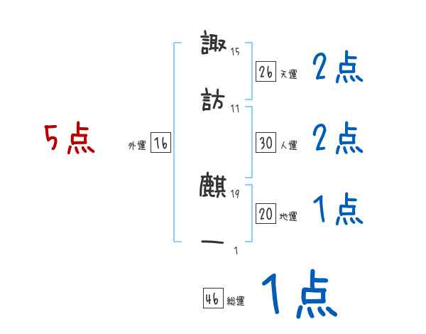 諏訪麒一さんの画数の鑑定結果