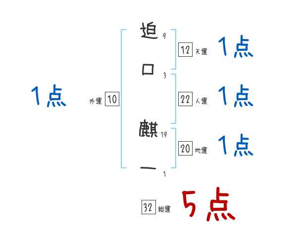 迫口麒一さんの画数の鑑定結果