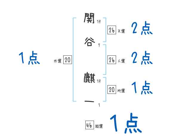 関谷麒一さんの画数の鑑定結果