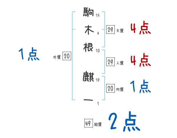 天運![]() | 駒木根麒一さんの天運は29画の4つ星!完全主義で才能がある。厳格な心の持ち主。 家系が持つ宿命的な運勢を表します。祖先から受け継いだ苗字ですので自分の力が及びません。家柄を象徴します。 |
