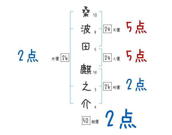 桑波田麒之介さんの画数の鑑定結果