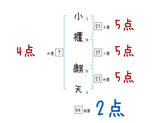 小櫃麒天さんの画数の鑑定結果