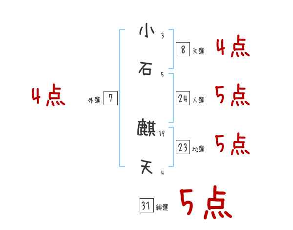 小石麒天さんの画数の鑑定結果