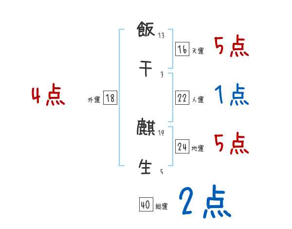 飯干麒生さんの総運は40画の2つ星