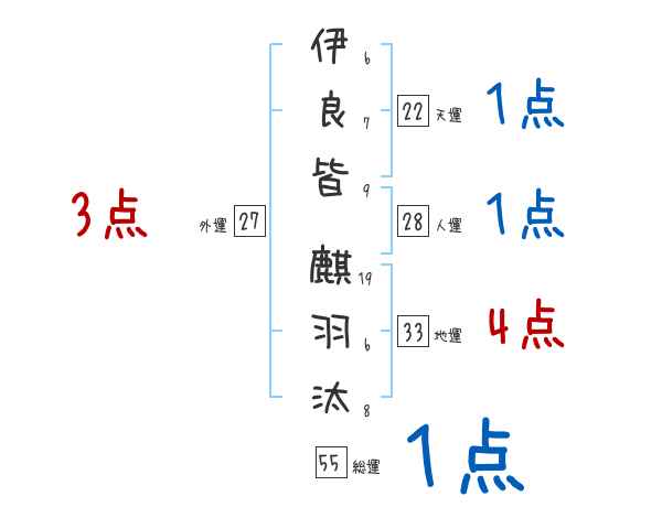 地運![]() | 伊良皆麒羽汰さんの地運は33画の4つ星!権力志向でプライドが高い。勇気があり運を切り開き成功する。 個性を表す基礎的な運勢です。性格形成や対人関係、行動力など家庭環境に影響されます。主に誕生してから20歳くらいまでの若年期の運勢を表します。 |