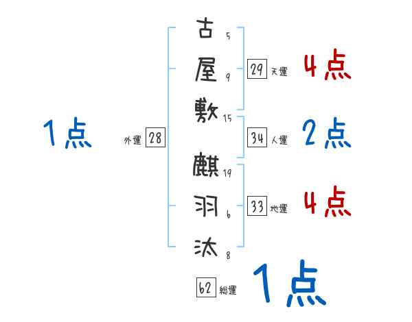古屋敷麒羽汰さんの外運は28画の1つ星