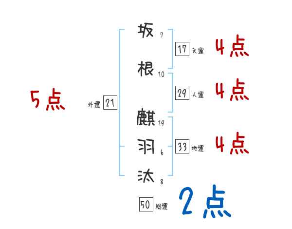 坂根麒羽汰さんの画数の鑑定結果