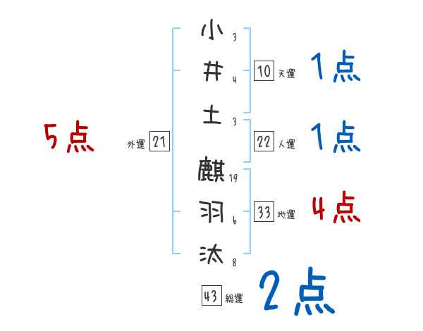 外運![]() | 小井土麒羽汰さんの外運は21画の5つ星!統率力がある。独立し成功する。名誉を手に入れる。 生活面を象徴する運勢です。外部から受ける影響力を表し、結婚運、家庭運や職場、環境への順応性を表します。 |