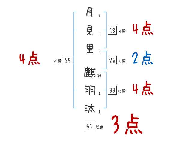 月見里麒羽汰さんの画数の鑑定結果
