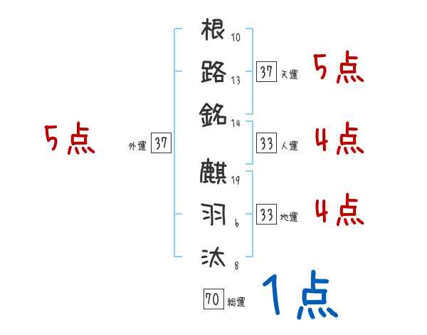 根路銘麒羽汰さんの画数の鑑定結果