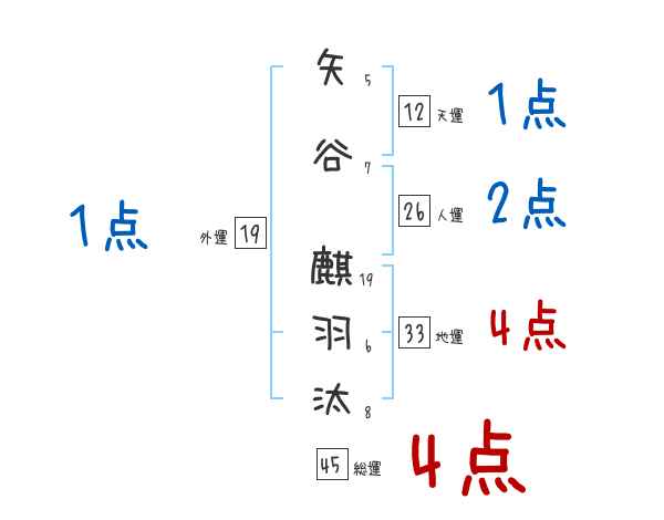 矢谷麒羽汰さんの画数の鑑定結果