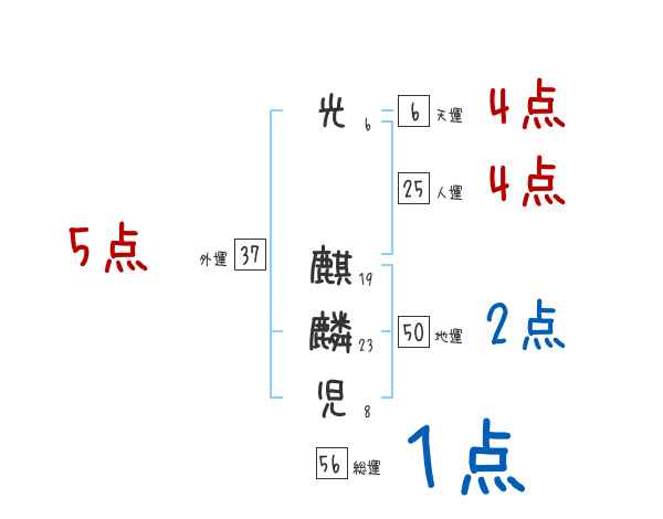 光麒麟児さんの画数の鑑定結果
